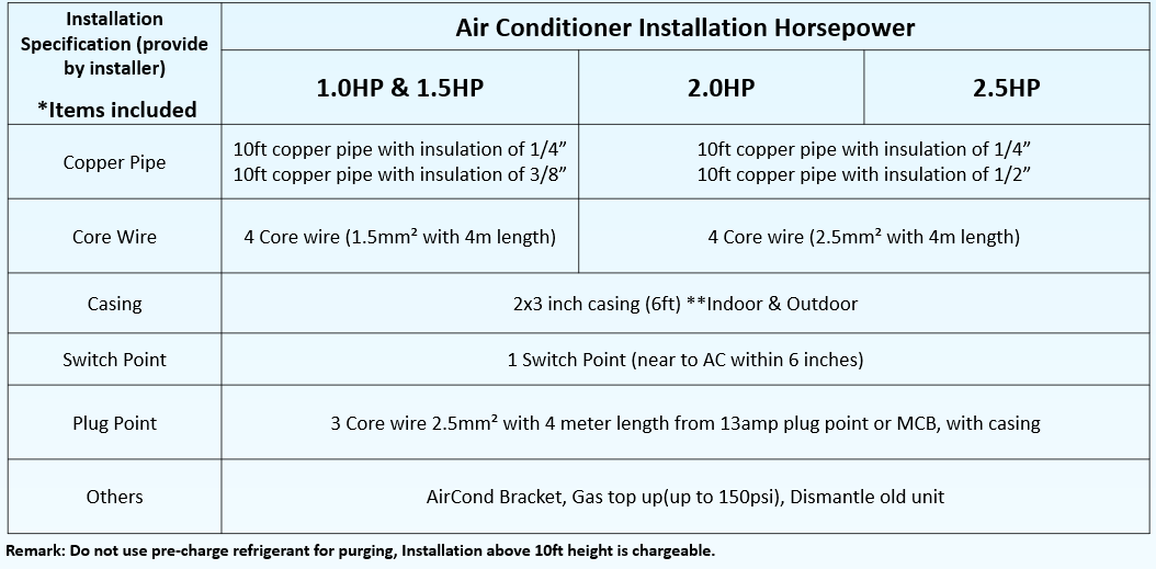 Power Supply : 1 phase 220-240 V, 50Hz (Power to indoor)