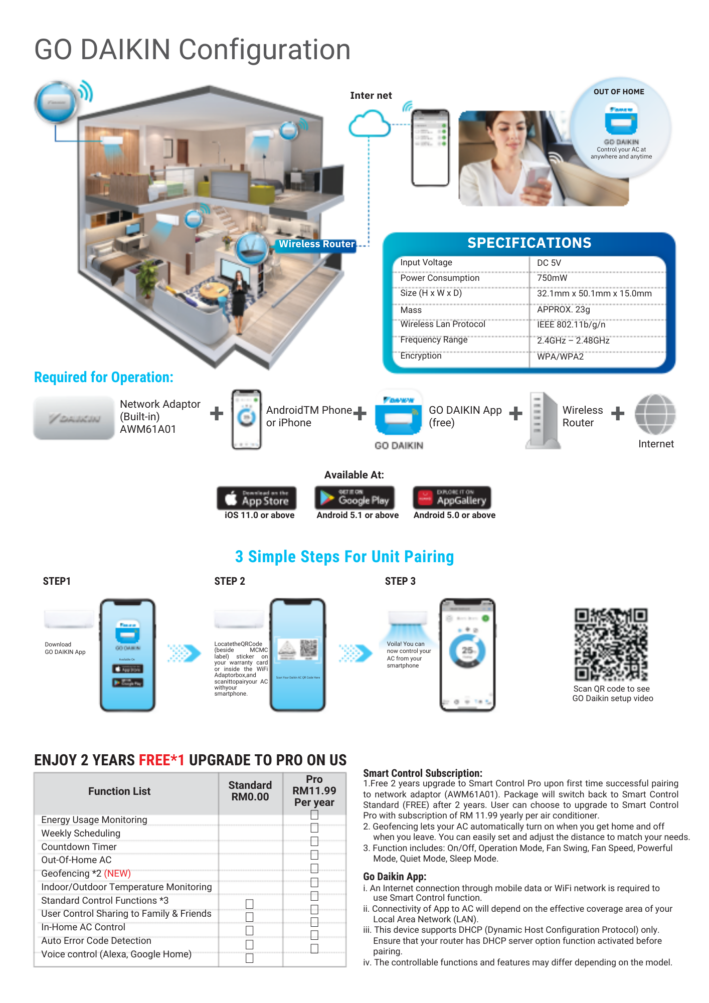 Power Supply : 1 phase 220-240 V, 50Hz (Power to indoor)